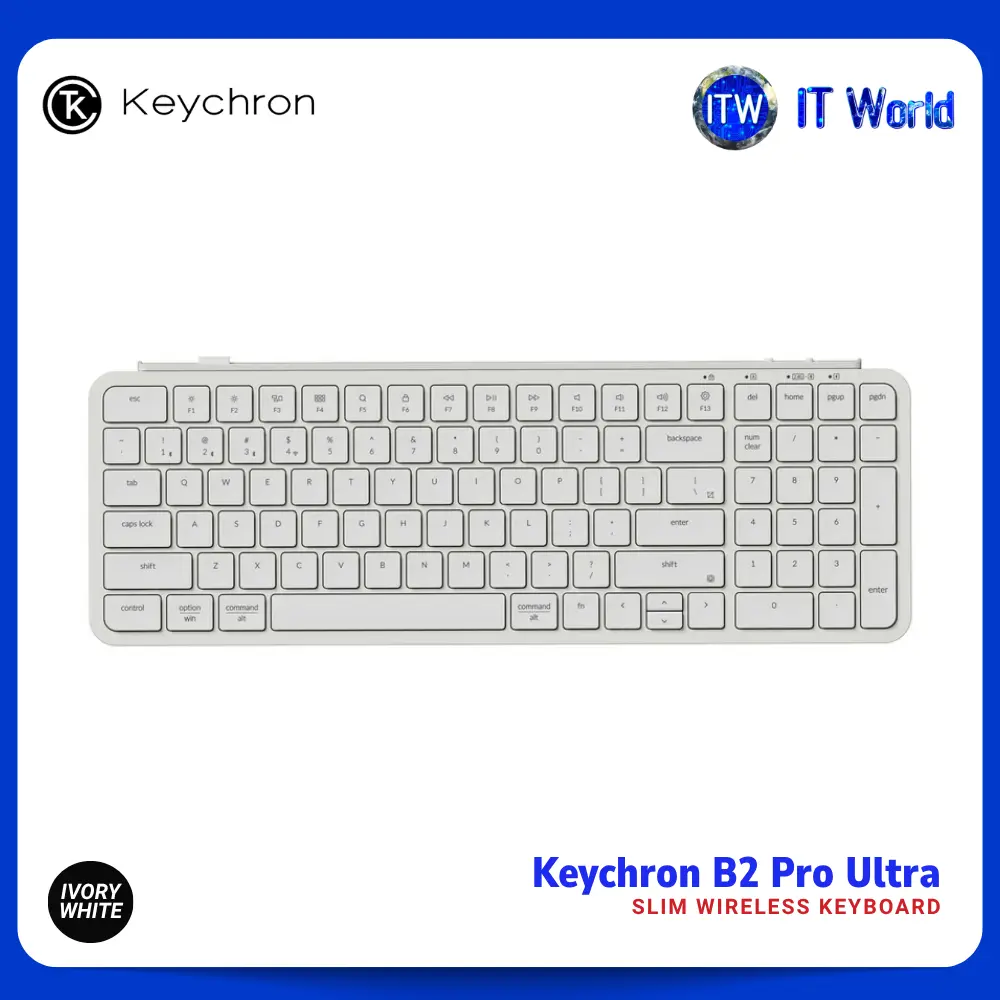 [Ivory White B2PK8] Keychron B2 Pro - Wireless Ultra-Slim / Keyboard 2.4GHz wireless, Bluetooth 5.2 / Type-C wired | itw (White)