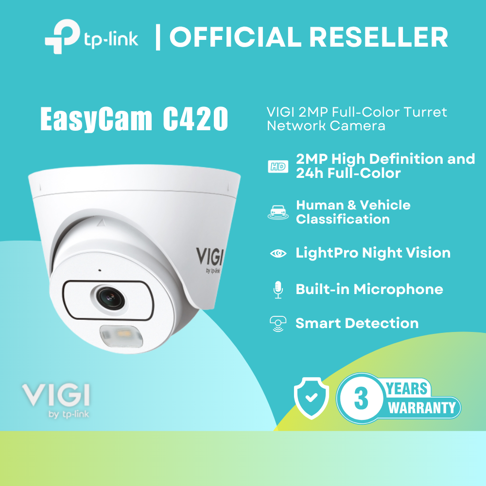 [EasyCam C420] TP-Link EasyCam C420 VIGI 2MP Full-Color Turret Network Camera PoE Built-in Mic itw