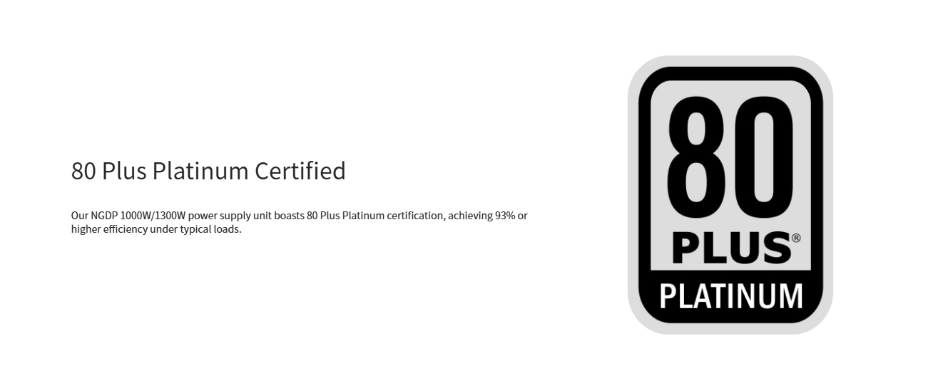 EFFICIENCY: 91.01% at full load (1000W) / 90.62 % at full load (1300W)(Date from 80 PLUS Testing Report)