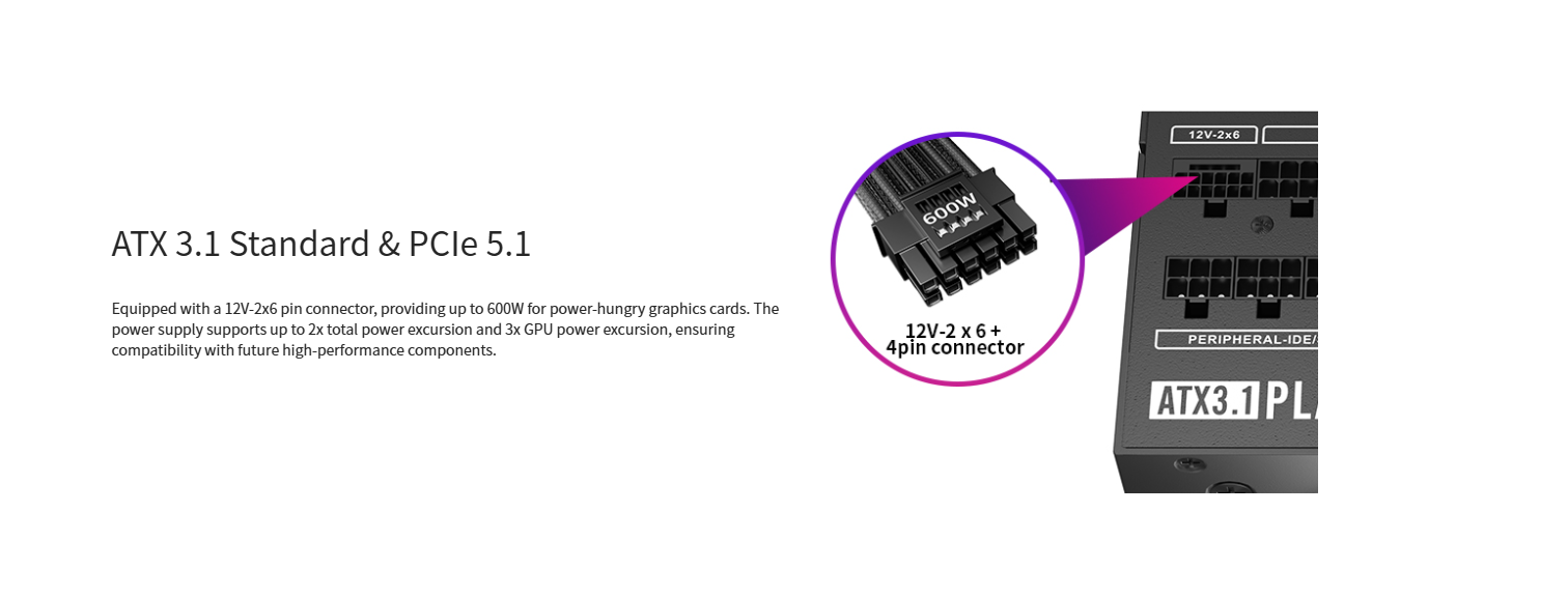 - ATX 3.1 and PCIe 5.1 ready: Ensuring reliable power delivery to your high-performance graphics card