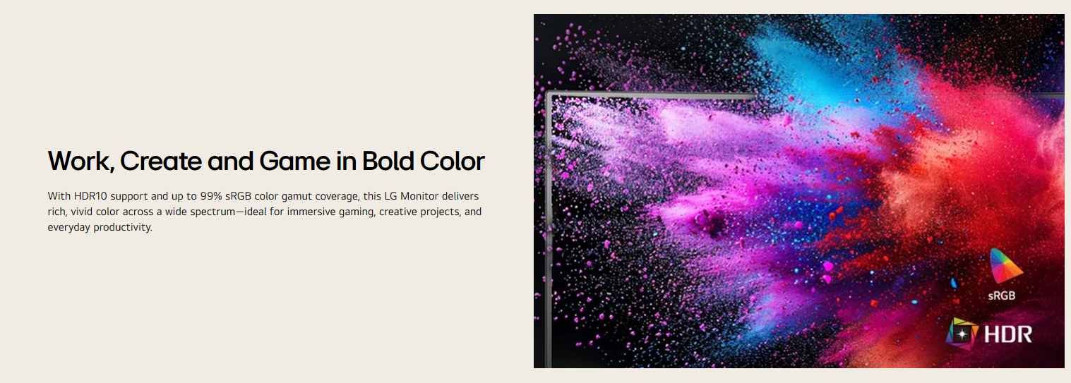 🌈 HDR10 + 99% sRGB = vibrant, accurate colors for creators & pros