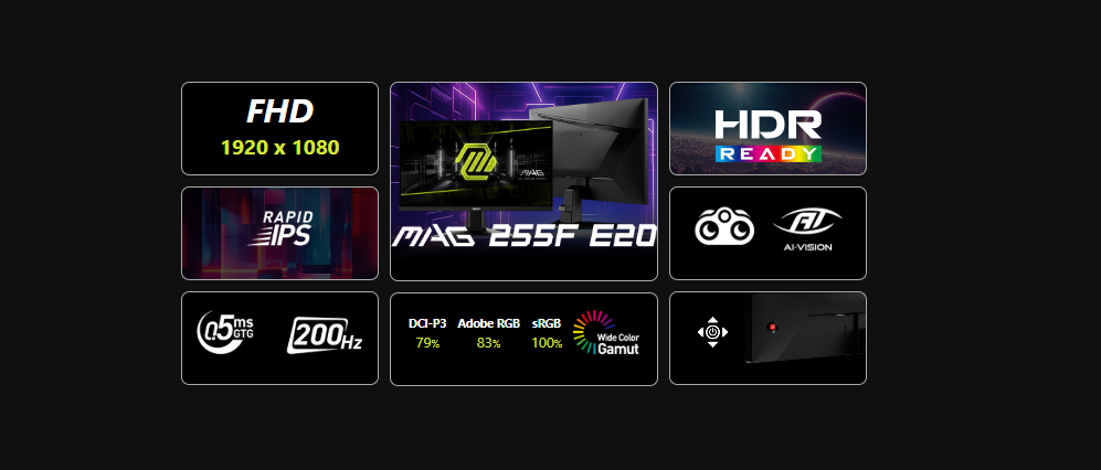 Product Name: MSI Gaming Monitor 24.5" MAG 255F E20 200Hz 1920 x 1080 FHD / Rapid / IPS / Flat | itw