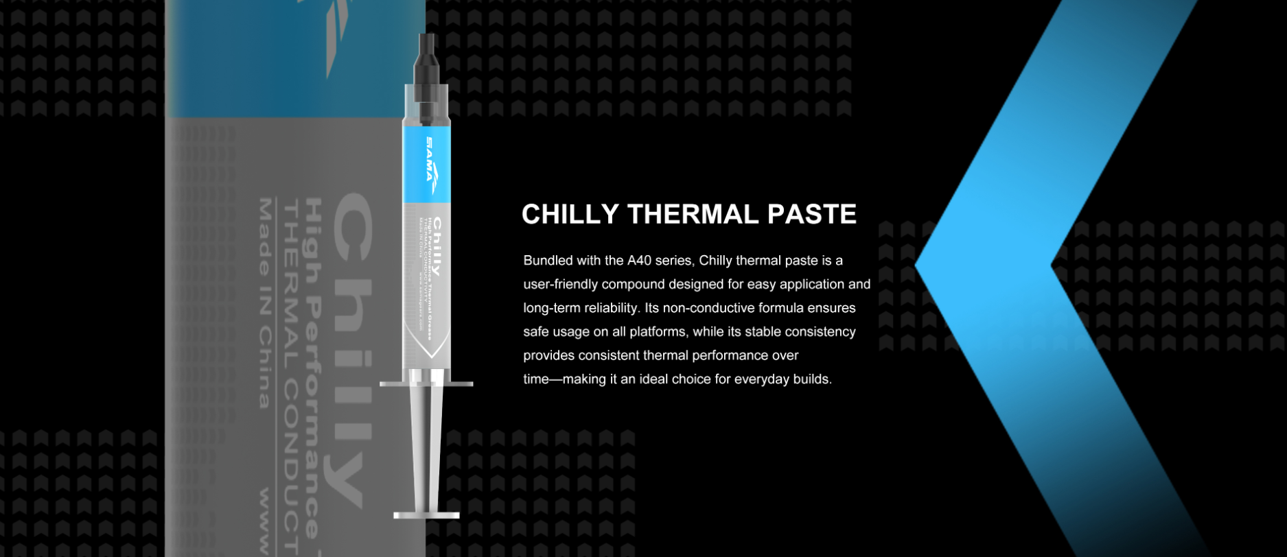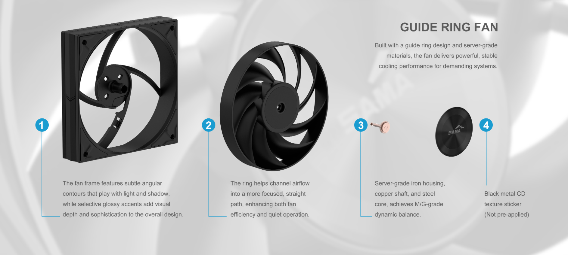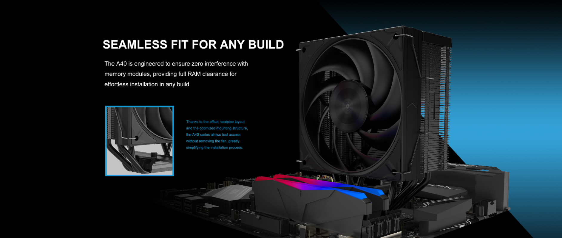 The SAMA A40 delivers powerful cooling in a stylish all-black build with a brushed metal top, direct-touch heatpipes, and a high-performance 120mm guide ring fan. Perfect balance of performance, silence, and style for your gaming or workstation PC.