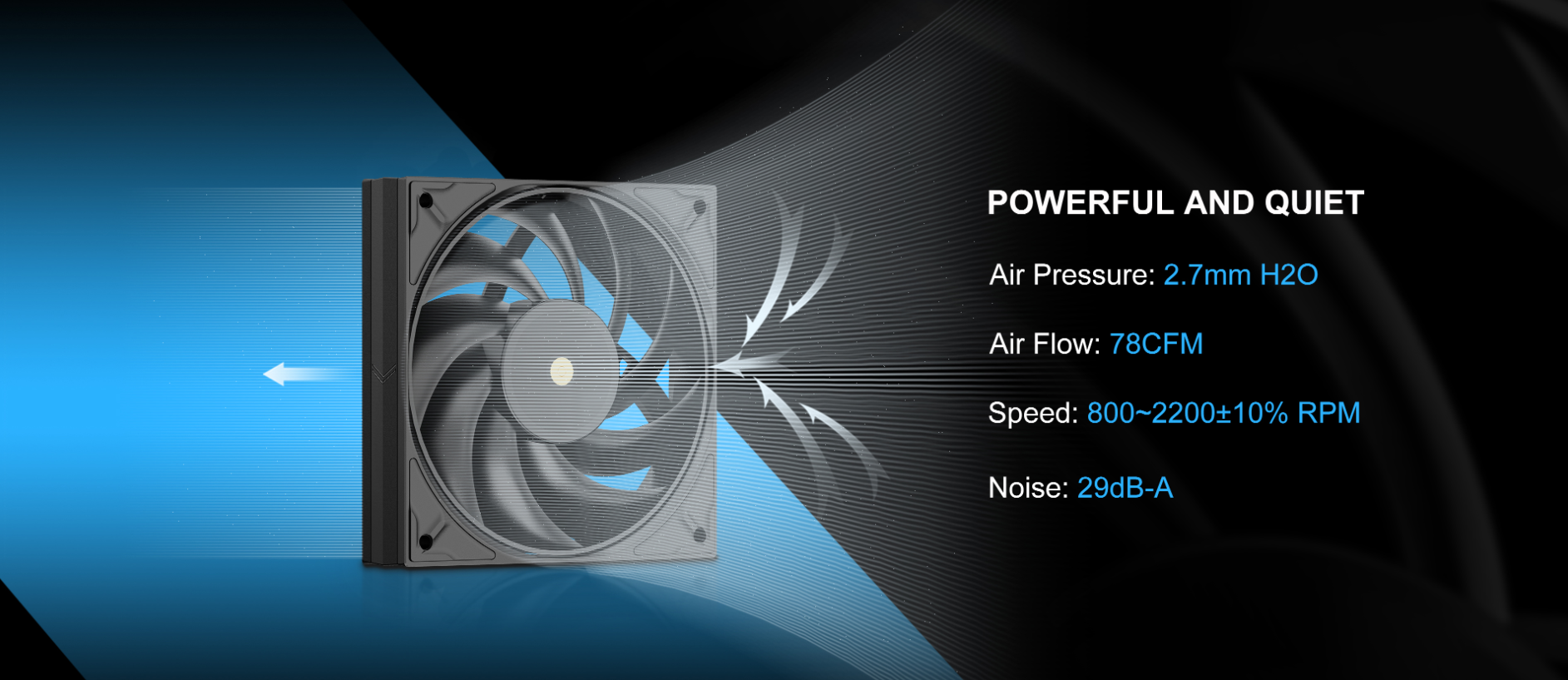 🔇 Silent Operation – Hydro bearing 120mm fan runs up to 2200 RPM with noise ≤29 dB-A