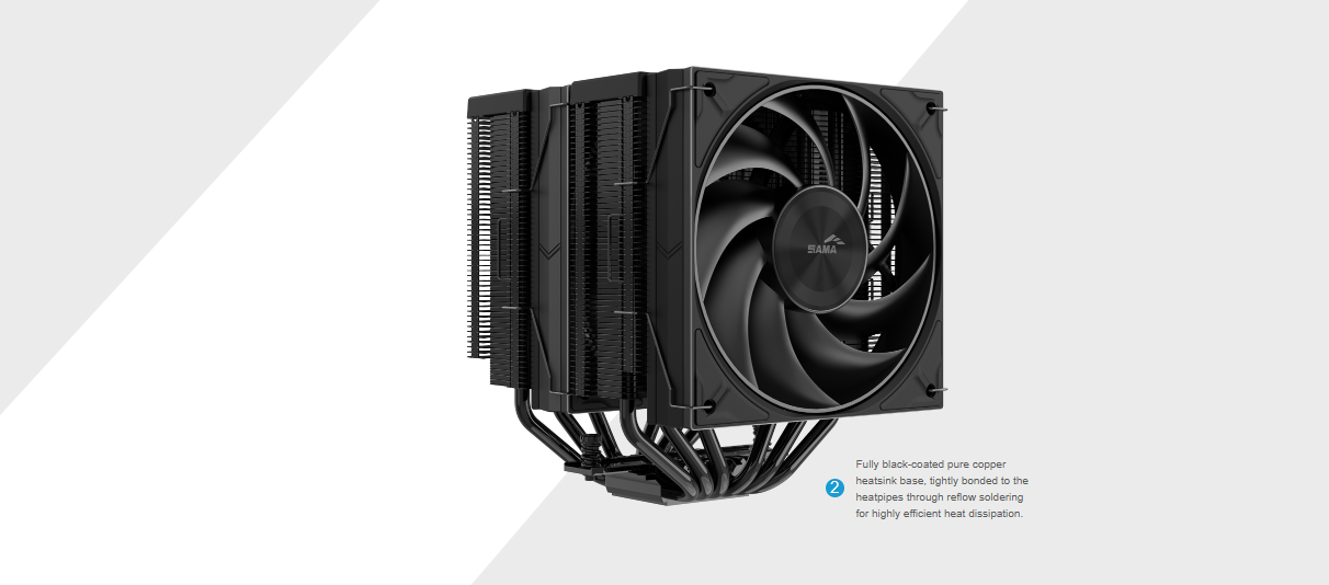SAMA A60B Black Dual Tower CPU Cooler | 265W TDP / Dual 120mm Fans / Intel & AMD Support | itw