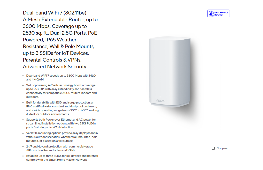 Product Name: ASUS ZenWiFi BD4 Outdoor Router Waterproof Wi-Fi High-Speed Gigabit Coverage | itw
