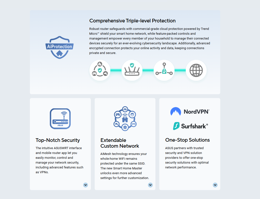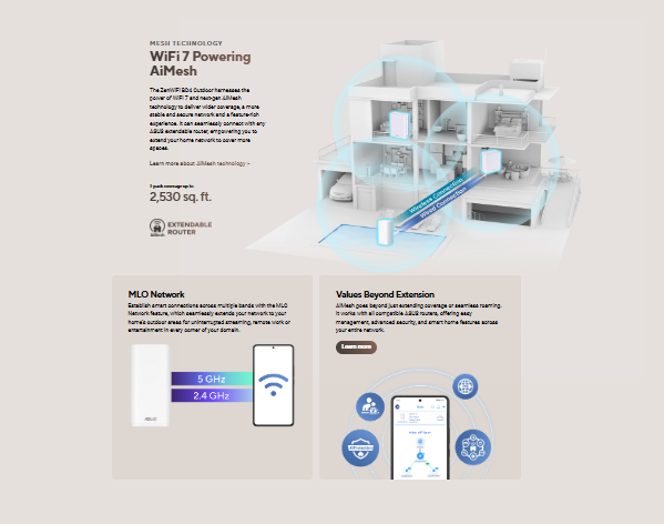 Extend your coverage indoors & outdoors up to 2530 ft² with AiMesh technology, compatible with other ASUS routers for smooth, drop-free roaming.