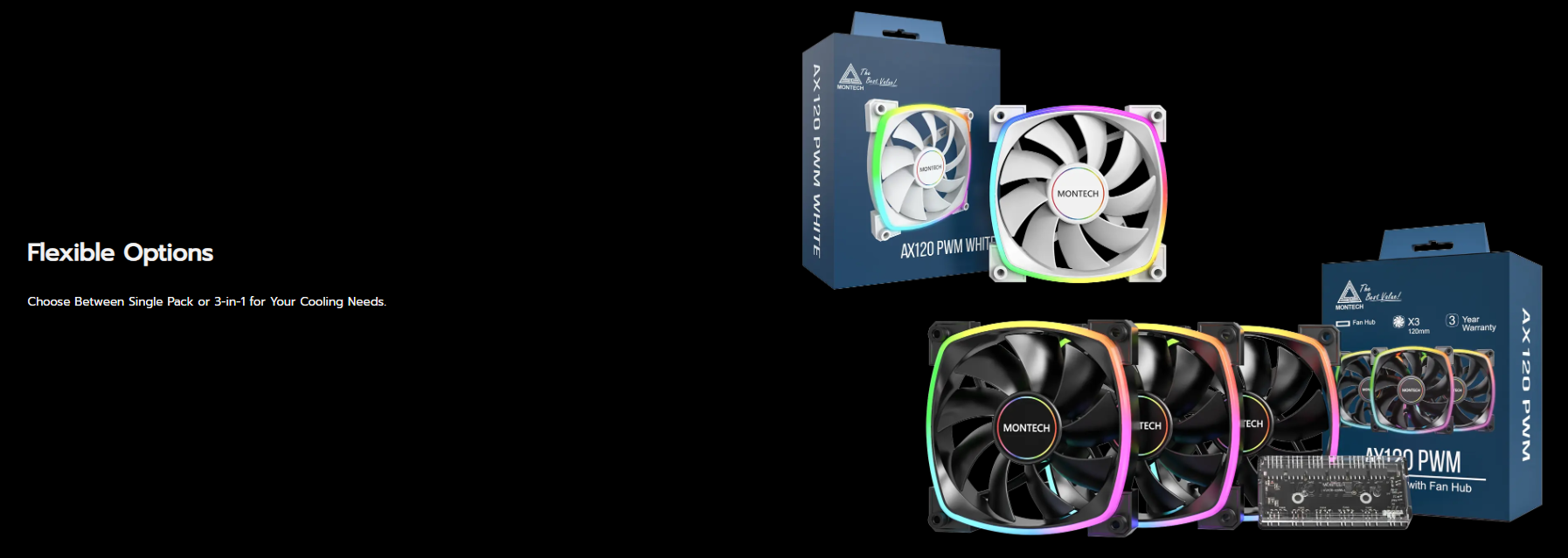 Product Name: Montech AX120 PWM 120mm ARGB Reverse Single Fan Kit (Black | White) | itw