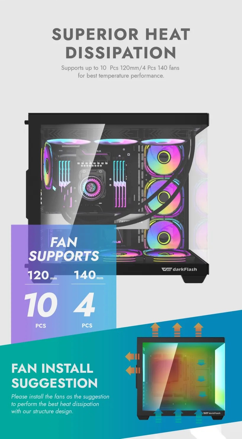 ✨Take your build to the next level with the Darkflash C285P V2, a premium ATX gaming PC case featuring a tempered glass side panel, dual chamber design, and massive cooling support. Designed for gamers, creators, and PC enthusiasts who demand performance, style, and airflow.