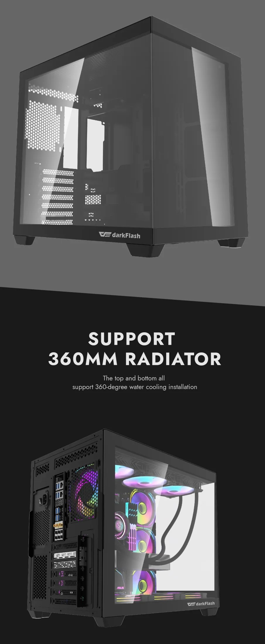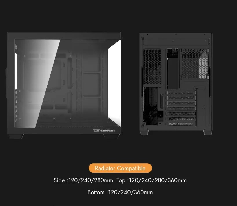 Product Name: Darkflash C285P V2 ATX Tempered Glass Side Panel Dual Chamber Gaming PC Case (Black/White) | itw