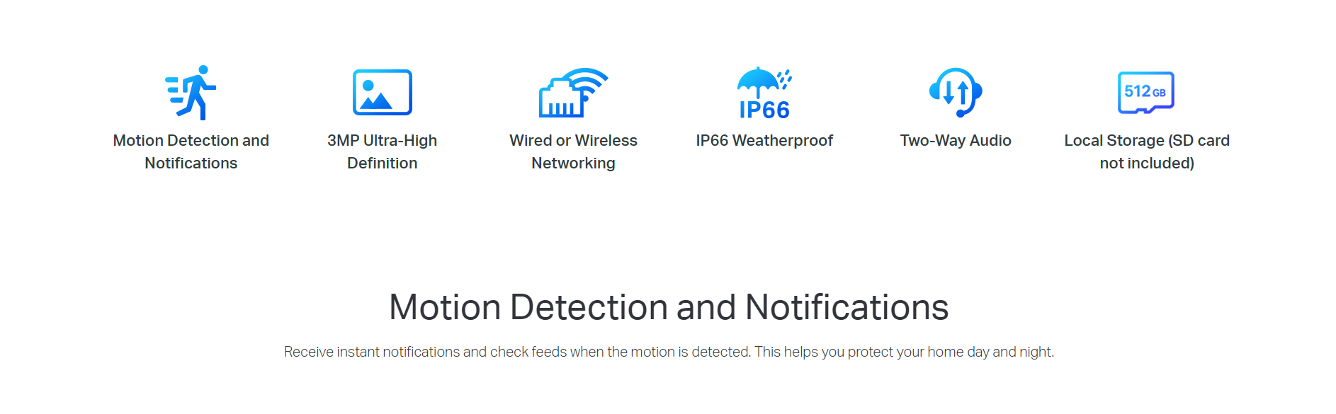 Motion Alerts + Alarms – Get real-time notifications, with sound & light deterrents.