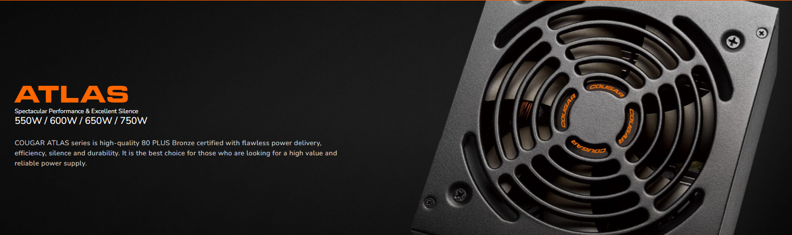 The COUGAR ATLAS Series (650W & 750W) delivers reliable, efficient, and stable power for gaming and high-performance PCs. With 80 PLUS Bronze certification, these PSUs ensure up to 87% efficiency, keeping your system cool, quiet, and energy-smart. Perfect for powering next-gen CPUs and PCIe 4.0 GPUs, backed with full protection features to safeguard your investment. 🔥
