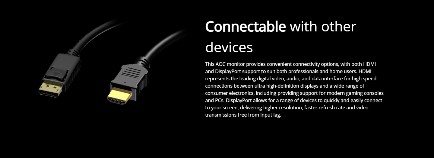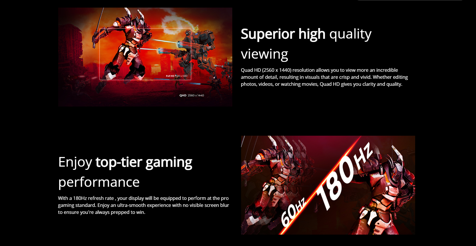 • Optimum Resolution: 2560 × 1440 @ 180Hz –DisplayPort 1.4; 2560 × 1440 @ 144Hz – HDMI 2.0