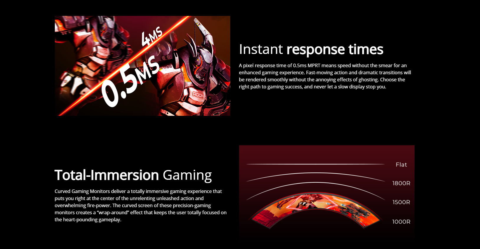 • Response Time: 0.5ms (MPRT) /1ms (GtG)
