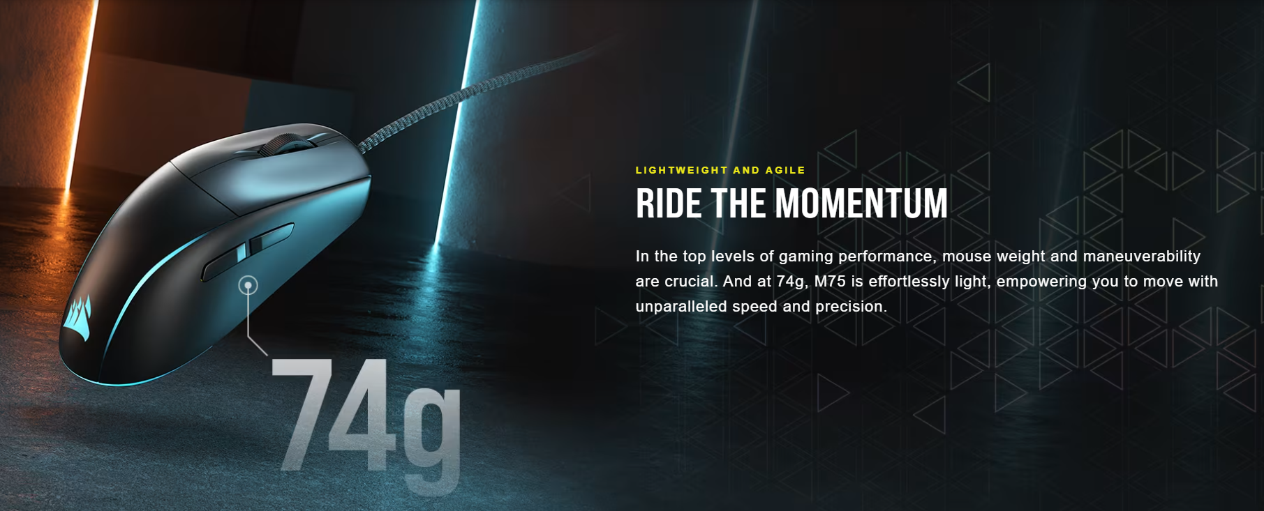 Product Name: CORSAIR M75 Lightweight RGB Gaming Mouse (AP) (Black) (CS-CH-930D010-AP)