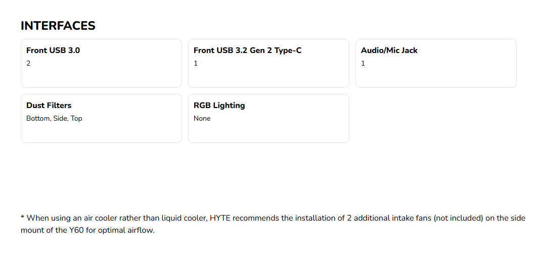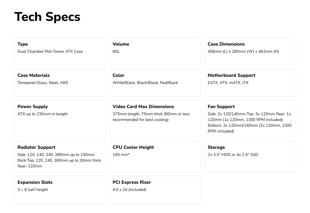 * Video Card Max Dimensions: 375mm length, 75mm thick (60mm or less recommended for best cooling)