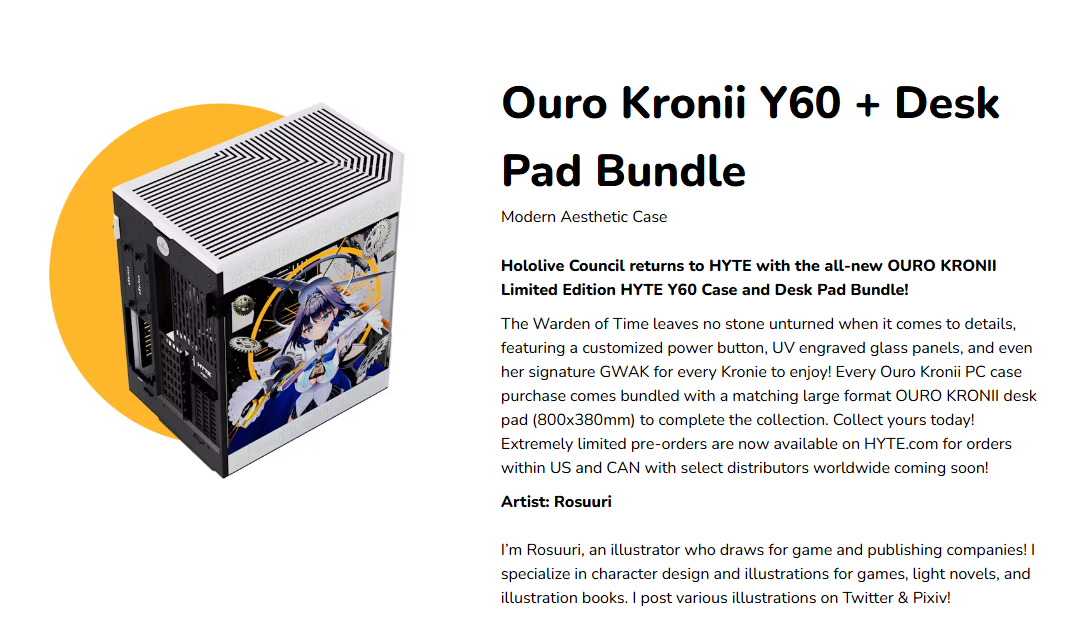 Product Name: Itw | Hyte Computer PC Case Ouri Kronii Y60 Mid-Tower Tempered Glass w/ Deskpad (CS-HYTE-Y60-KRONII)