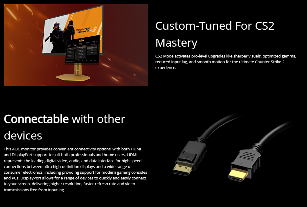 Step up your esports performance with the AOC CS25G, built for pro-level gaming with an ultra-fast 310Hz refresh rate and 0.3ms MPRT response time ⚡. Experience buttery-smooth visuals, pinpoint precision, and vibrant HDR400-certified colors for the ultimate competitive edge.