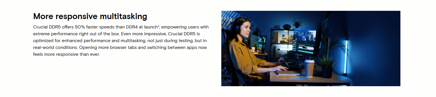 🚀 Boost Your Laptop’s Performance Instantly Upgrade to Crucial DDR5 and experience up to 50% faster data transfer than DDR4! Enjoy quicker load times, smoother multitasking, faster downloads, and reduced lag.