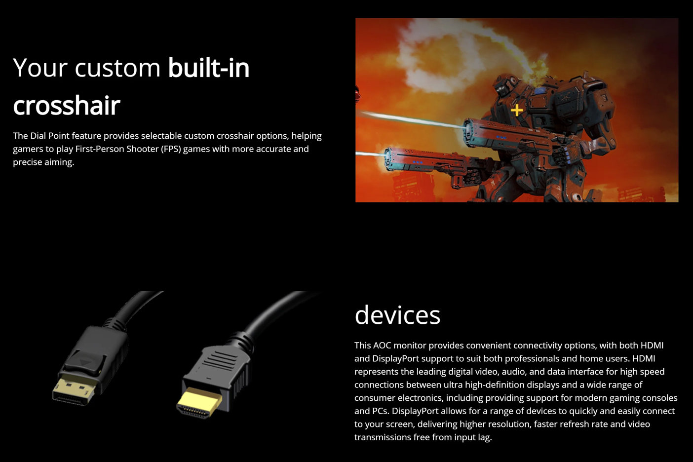 🎯 Gaming Enhancements – Low Input Lag, Shadow Control, Crosshair/Dial Point, Frame Counter