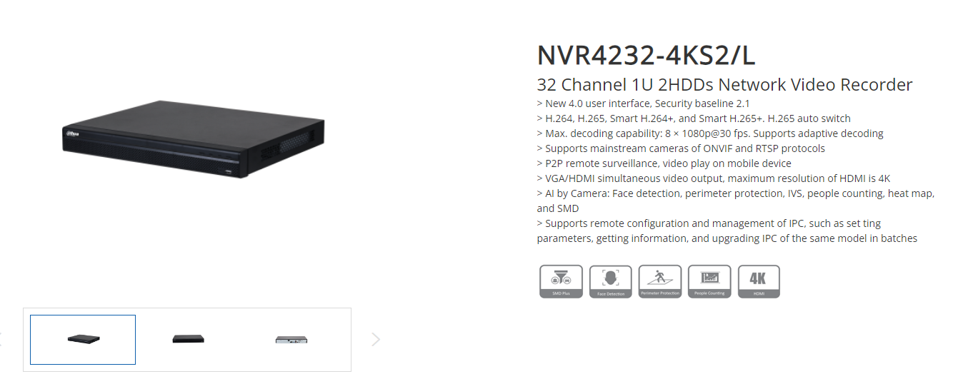 Product Name: Dahua NVR4232-4KS2/L 32 Channel 1U 2HDDs Network Video Recorder