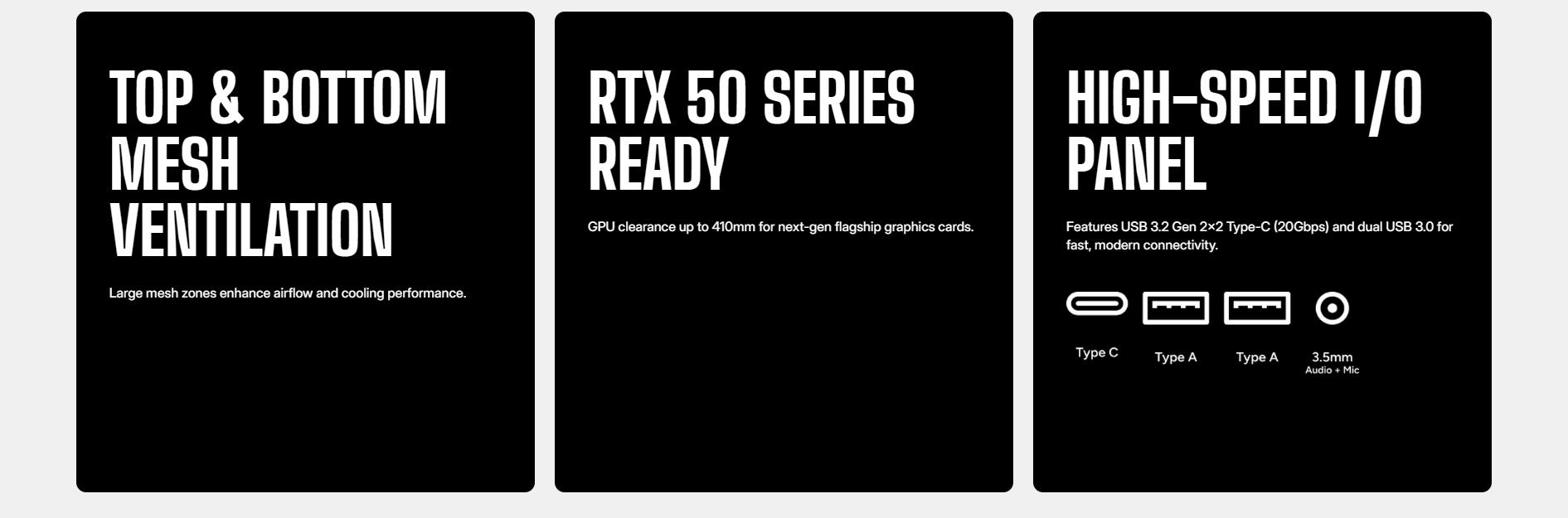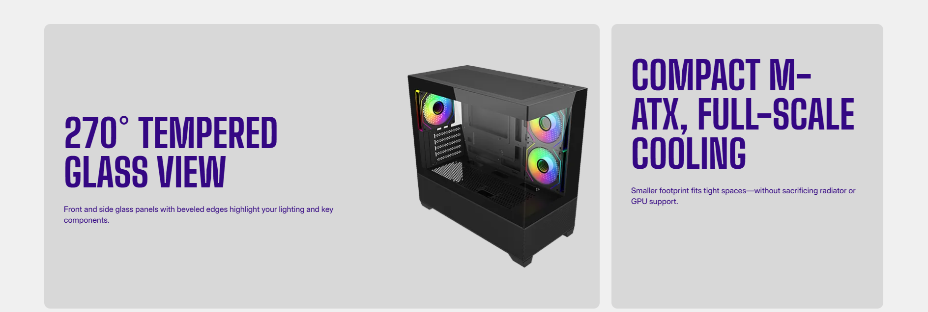 ⚡ Spacious inside despite compact footprint — supports GPUs up to 425mm and CPU coolers up to 170mm.