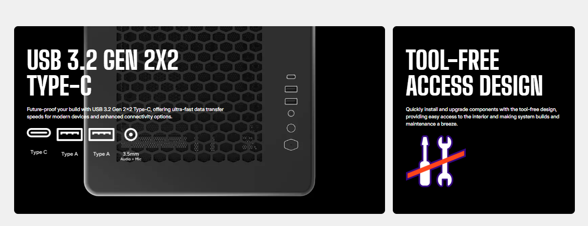 I/O Panel: 2x USB 3.1 Gen 1 Type-A, 1x USB 3.2 Gen 2 Type-C