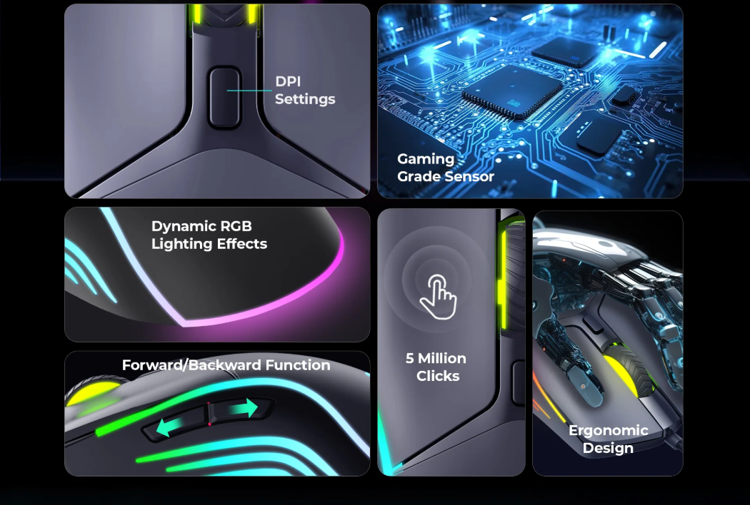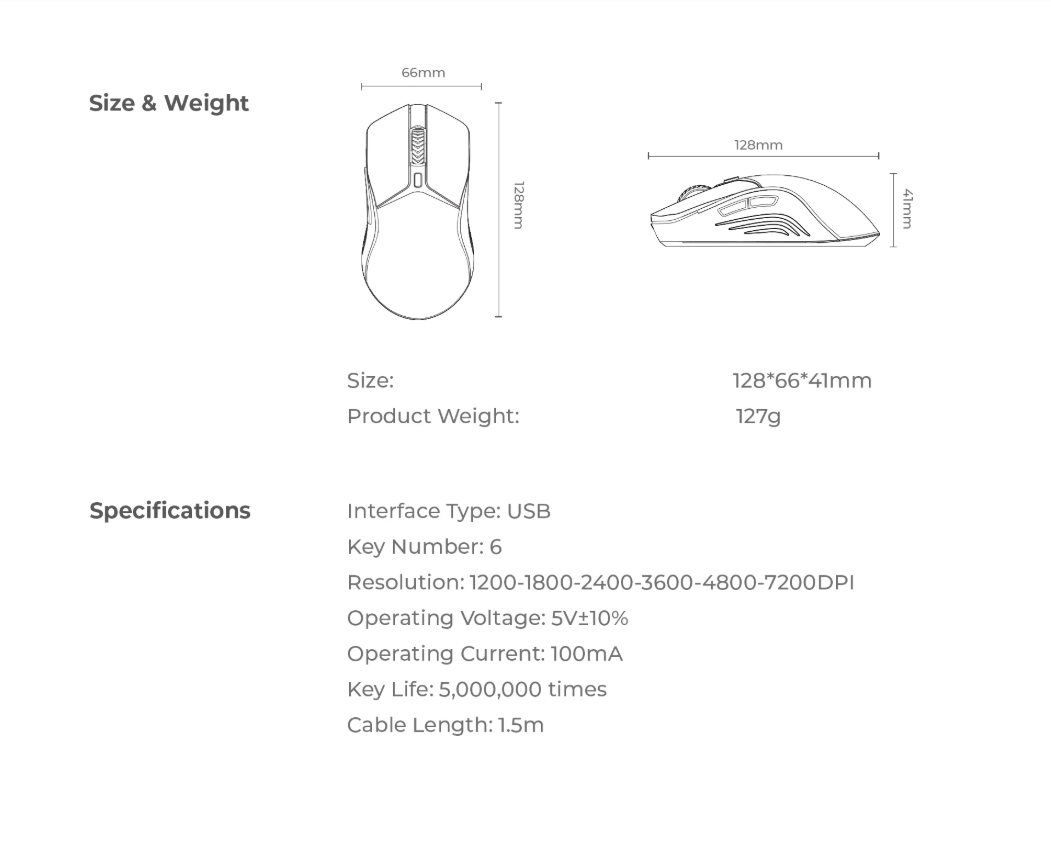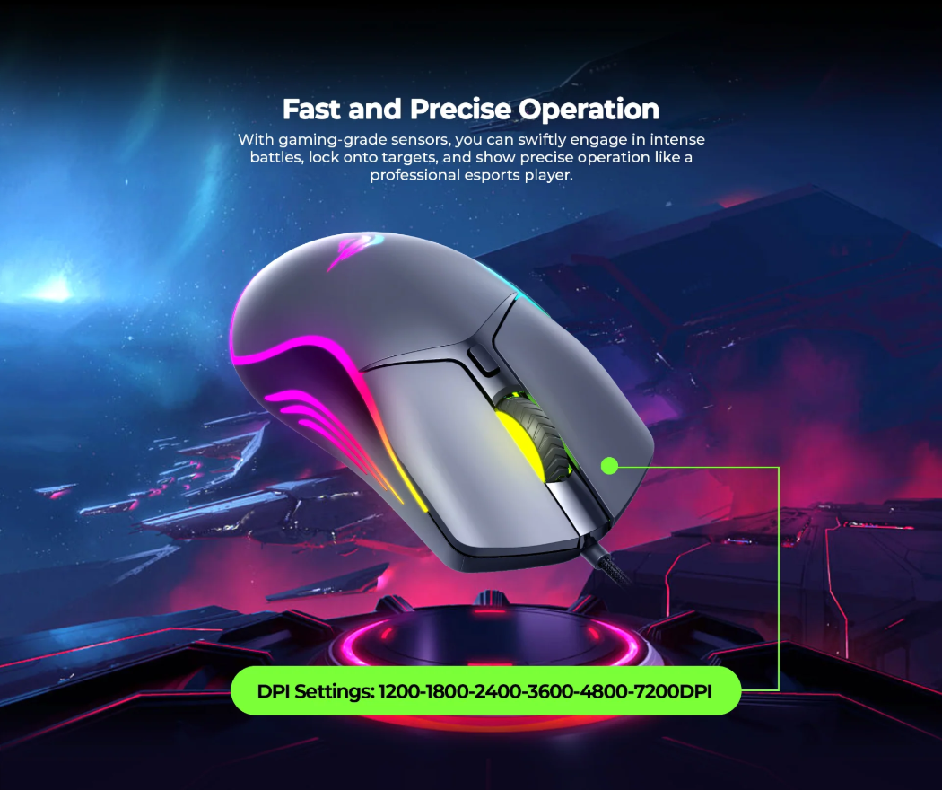 🎯 7200DPI Adjustable Sensor – Fine-tune DPI from 1200 up to 7200 for any gaming scenario.