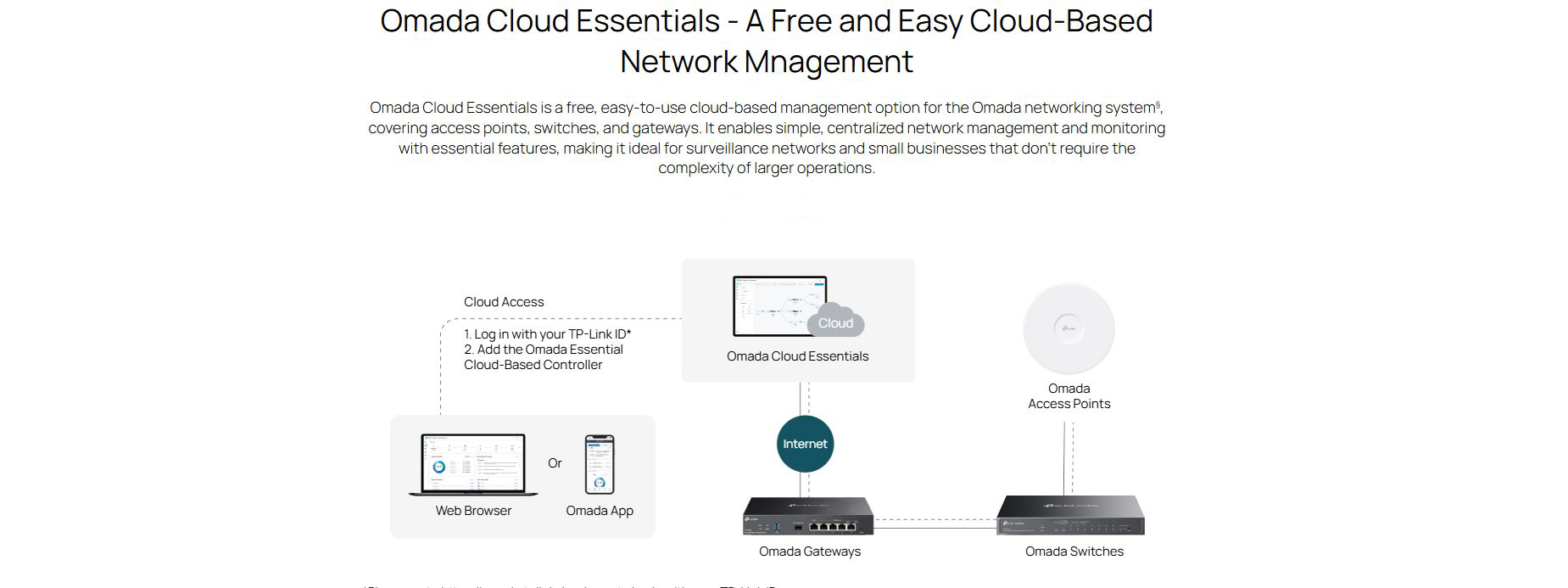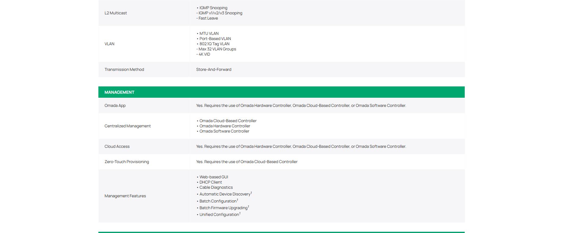 * Cloud Access: Yes,Requires the use of Omada Hardware Controller, Omada Cloud-Based Controller, or Omada Software Controller