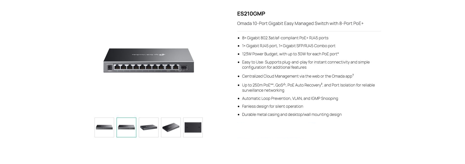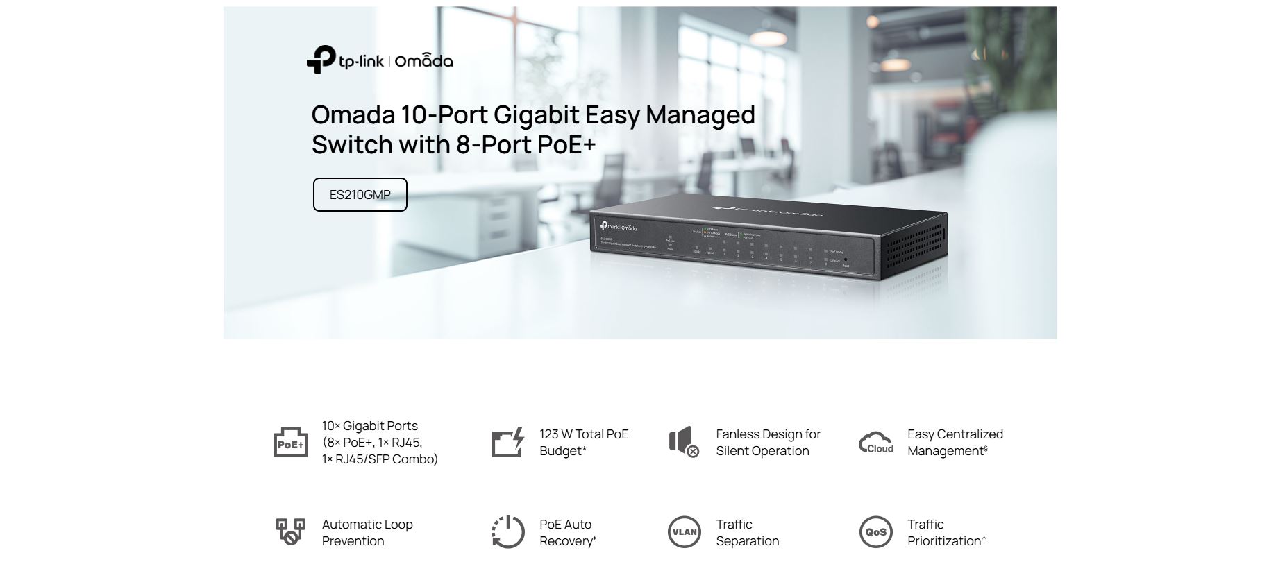 Product Name: Itw | TP-Link Switch ES210GMP Omada 10-Port Gigabit Easy Managed Switch with 8-Port PoE+