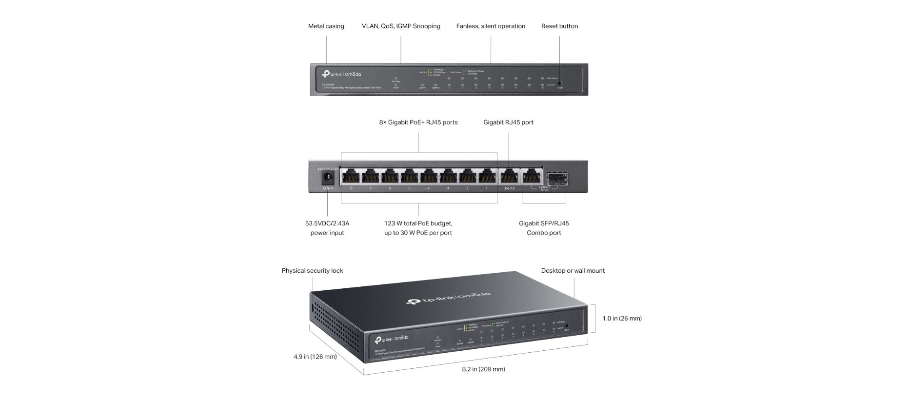 Omada 10-Port Gigabit Easy Managed Switch with 8-Port PoE+