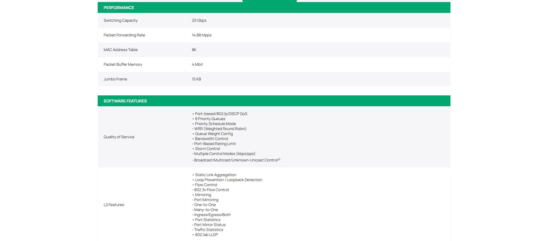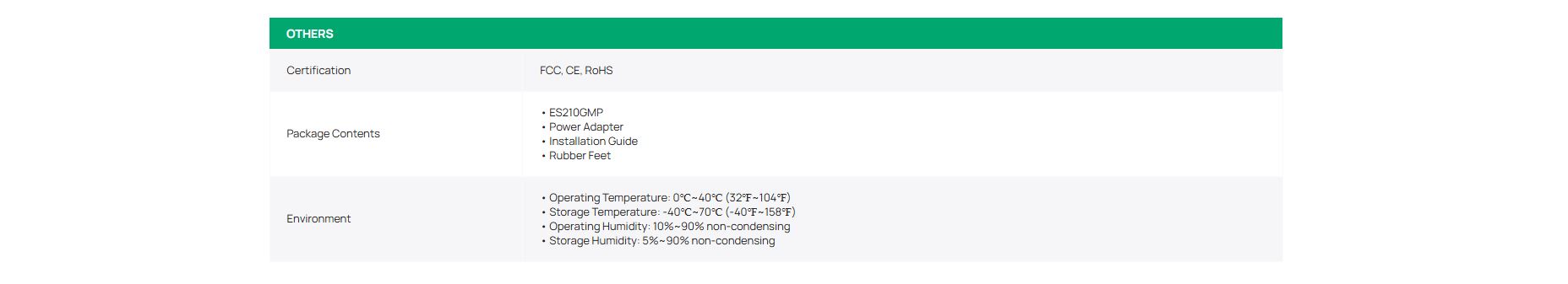 > 1× Gigabit RJ45 port, 1× Gigabit SFP/RJ45 Combo port