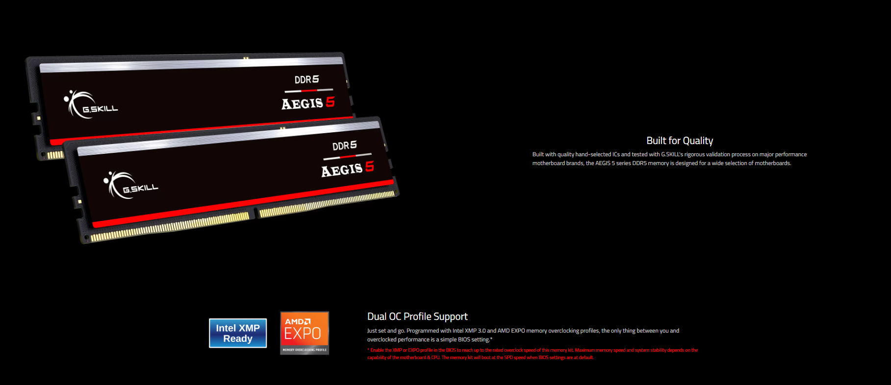 G.Skill DDR5 RAM 16GB (1x16GB) 6000MT/s Aegis 5 Intel XMP / AMD EXPO(F5-6000J3636F16GX1-IS)