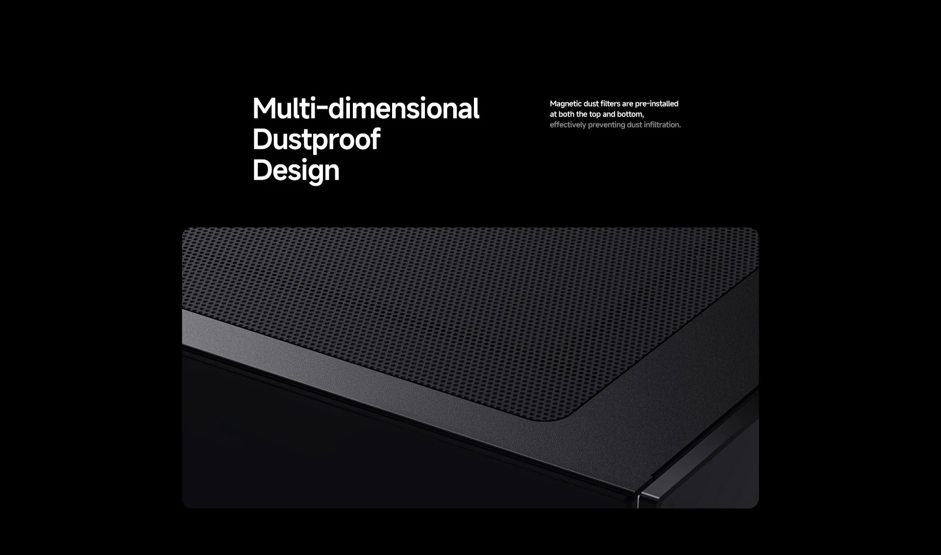 The top and bottom panels come with magnetic dust filters, effectively preventing dust infiltration.