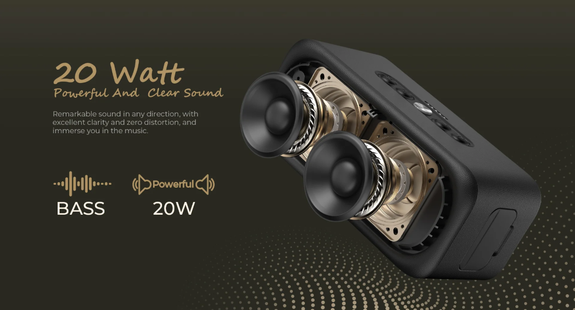 🔊 20W Powerful Sound – dual speaker drivers for immersive audio