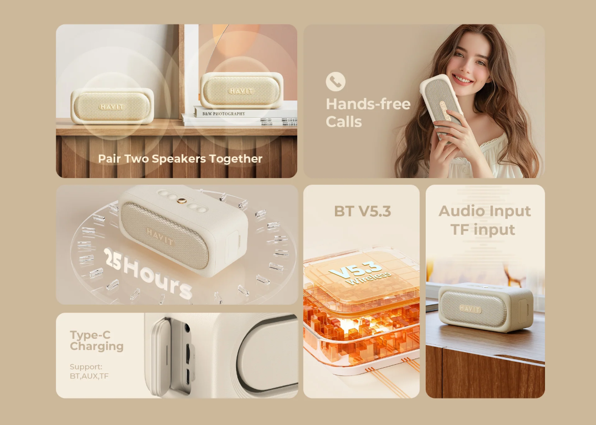 Experience powerful sound with the Havit Classic 1 SK905BT Bluetooth Speaker – designed with dual drivers delivering 20W audio output for clear, room-filling sound. 🎵 With 25 hours playtime, IPX7 waterproofing, and a stylish classic design (available in 🖤 Black & 🤎 Beige), this speaker is your perfect companion for travel, outdoor adventures, or home relaxation. 🏕️🏠
