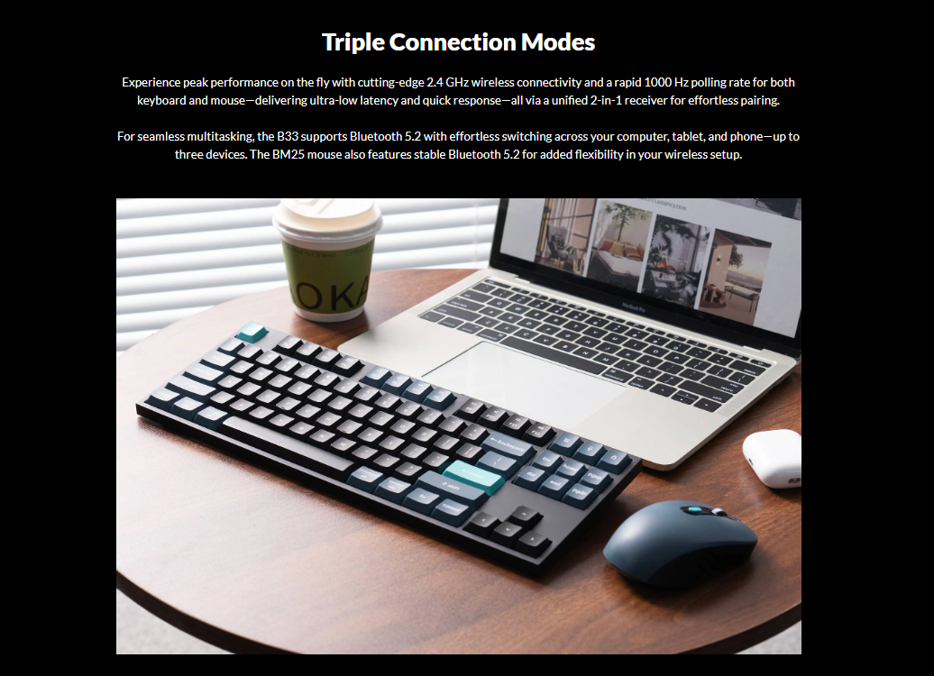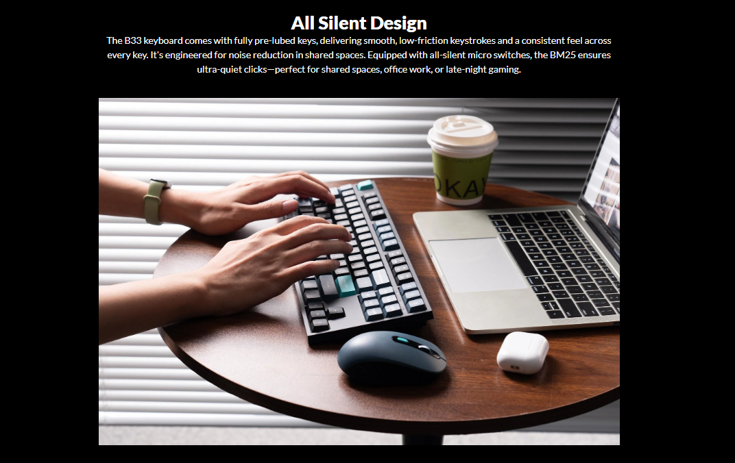 *Unleash seamless control and precision with the Keychron B33 keyboard and BM25 mouse wireless combo. Designed for creators and professionals alike, this combo delivers smooth keystrokes and pinpoint accuracy.
