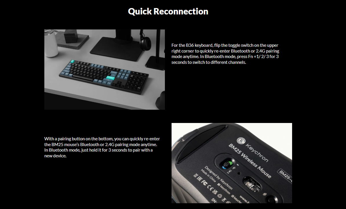 *Unleash seamless control and precision with the Keychron B36 keyboard and BM25 mouse wireless combo. Designed for creators and professionals alike, this combo delivers smooth keystrokes and pinpoint accuracy.