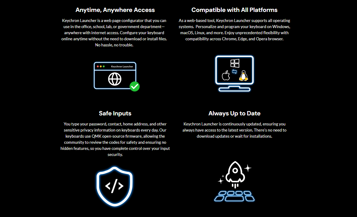 *Keychron C3 Pro 8K QMK Wired Custom Mechanical Keyboard has included keycaps for both Windows and macOS. It allows anyone to master any keyboard keys or macro commands through Keychron Launcher web app. Users can hot-swap with any MX mechanical switch in a breeze.