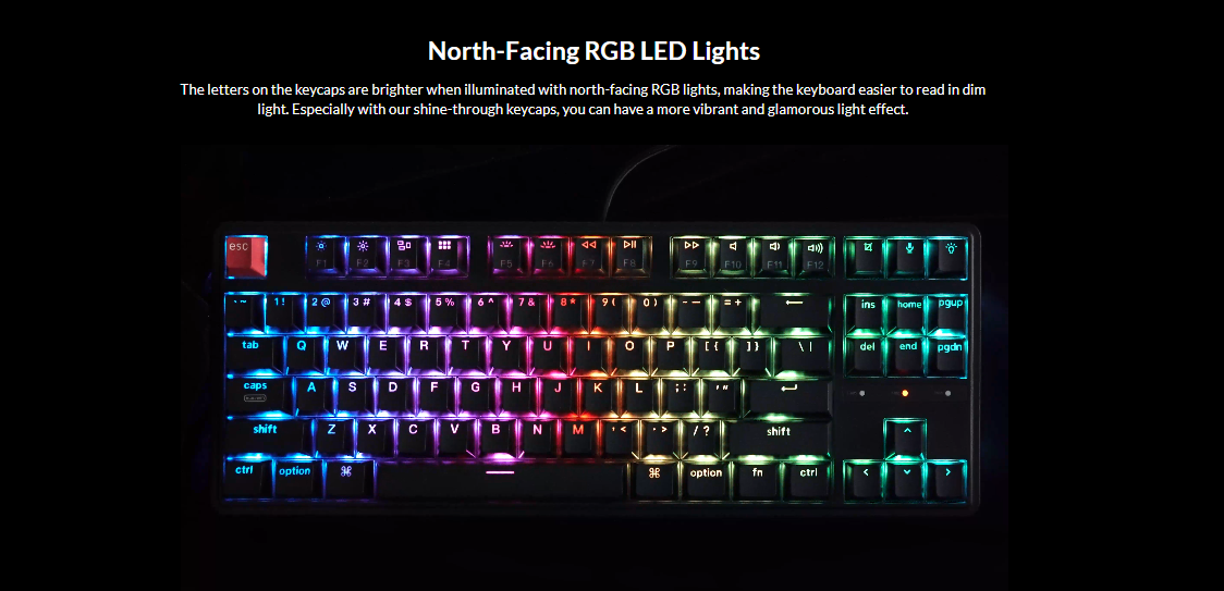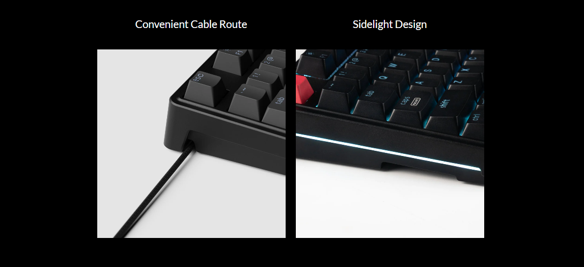 Keycaps: Cherry profile double-shot PBT keycaps, shine-through