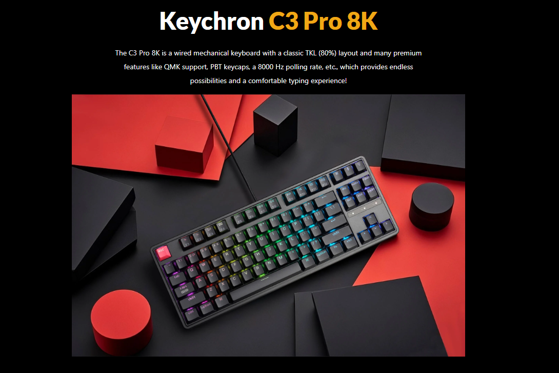 Product Name: Keychron C3 Pro 8K QMK Wired Mechanical Keyboard RGB Hot-Swappable (Red/Brown/Banana Switch) | itw