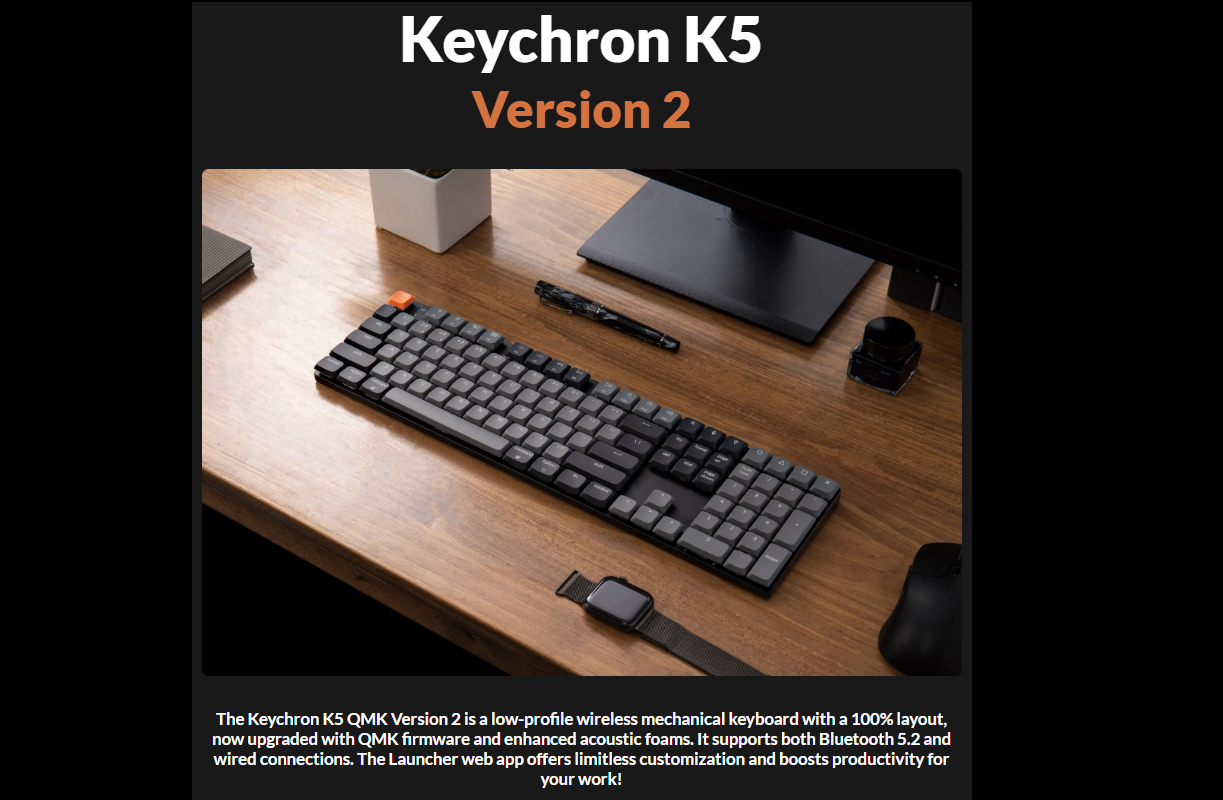 🔥 Keychron K5 QMK Version 2 – Ultra-Slim Wireless Mechanical Keyboard (100% Layout)