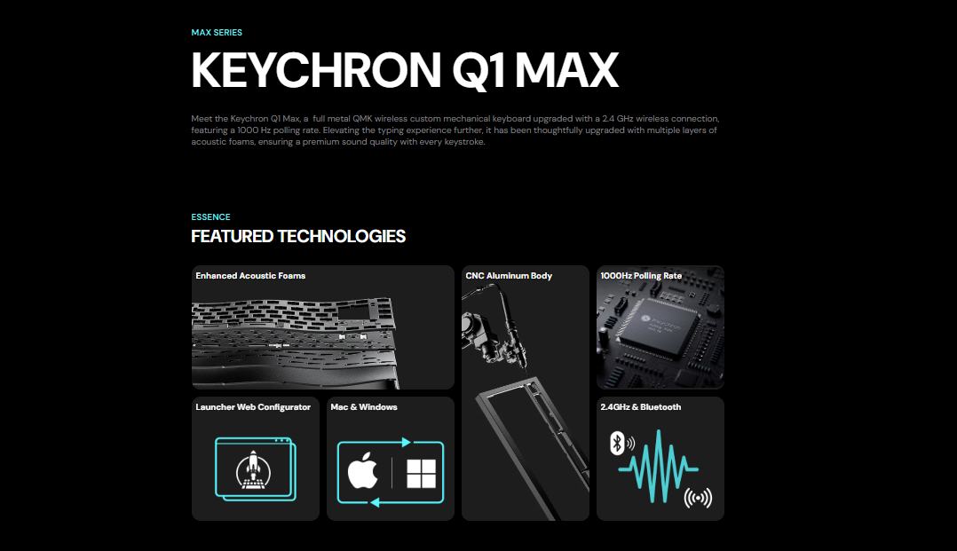 Product Name: Keychron Q1 Max QMK/VIA Wireless Custom Mechanical Keyboard Carbon Black (Red/Banana Switch) | itw
