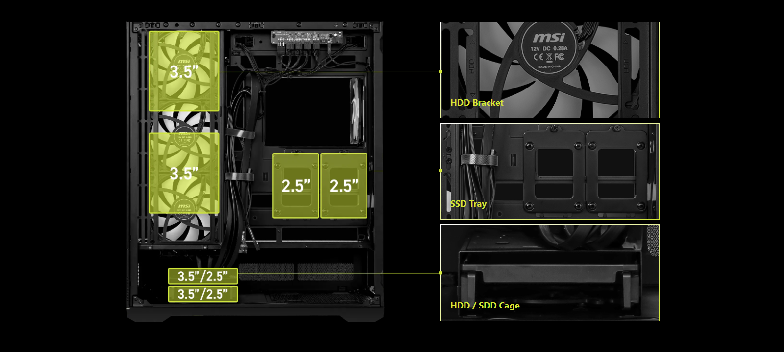 💾 Drive Support: 2x 2.5”, 2x 3.5”, 2x combo (2.5”/3.5”)