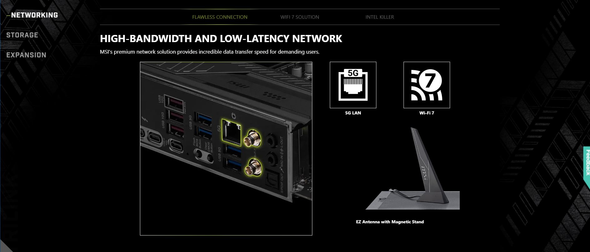> Ultra Connect: Thunderbolt™ 4 port, Intel® Killer™ 5G LAN & Intel® Killer™ Wi-Fi 7 Solution - the latest solution for professional and multimedia use, delivering secure, stable, and high-speed networking and data transmission