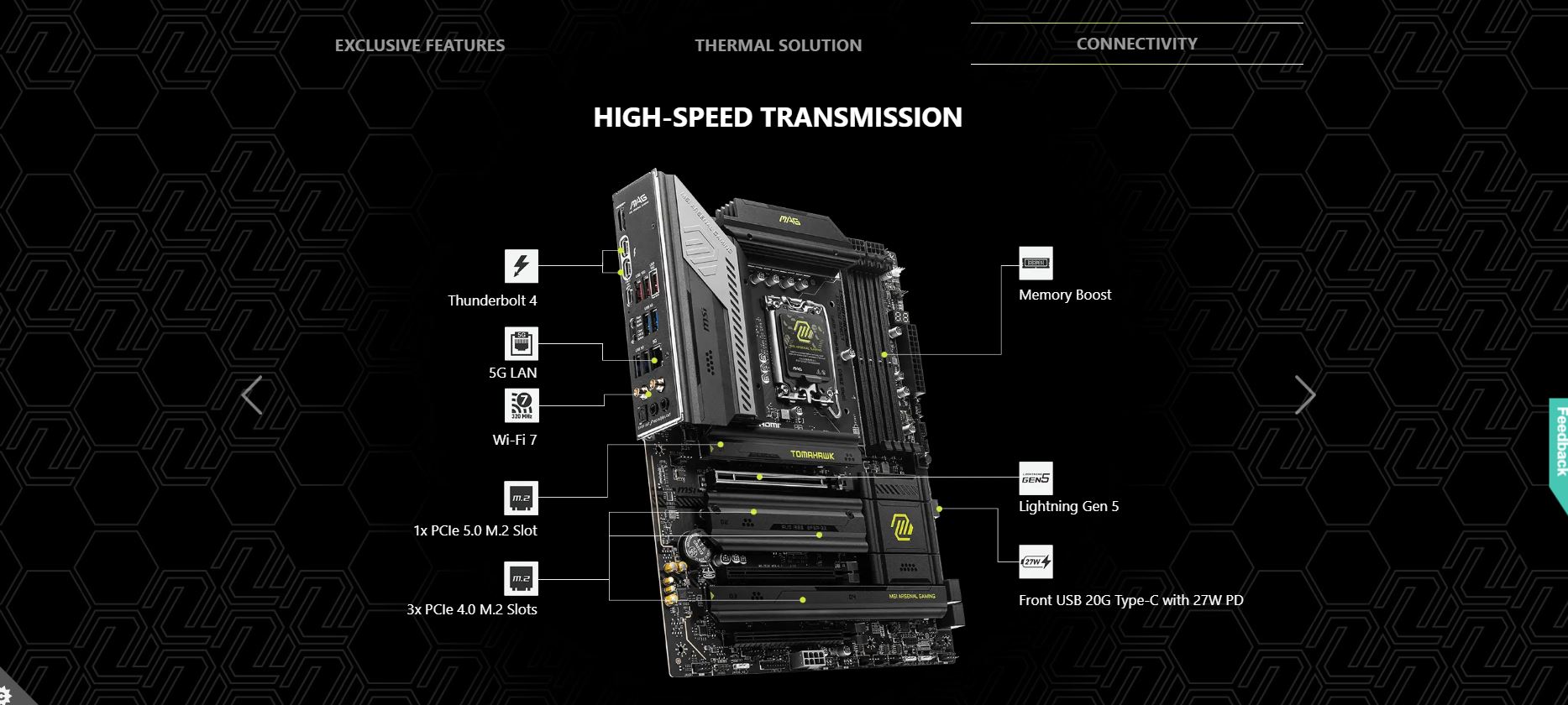 > Lightning Fast Game experience: PCIe 5.0 slot, Lightning Gen 5 x4 M.2
