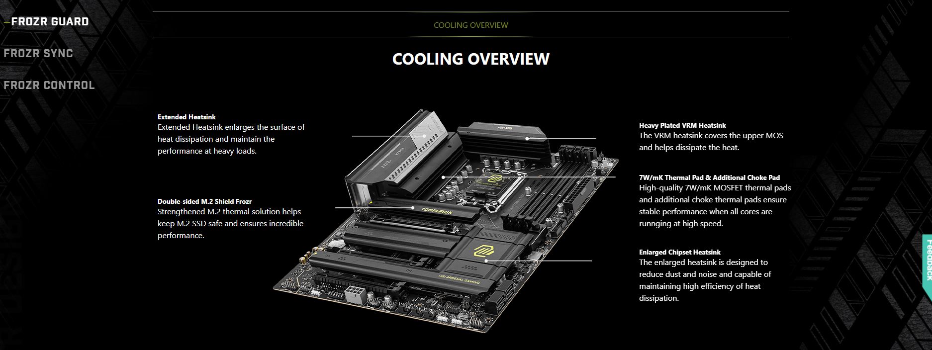 > Frozr Guard: Extended Heatsink, MOSFET thermal pads rated for 7W/mK, additional choke thermal pads and EZ M.2 Shield Frozr II are built for high performance system and non-stop experience