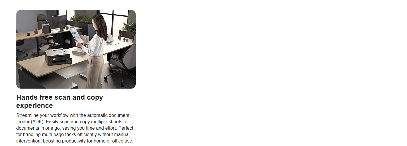 Automatic Document Feeder (ADF) Maximum Paper Capacity: 20 pages (80 gsm, plain paper)