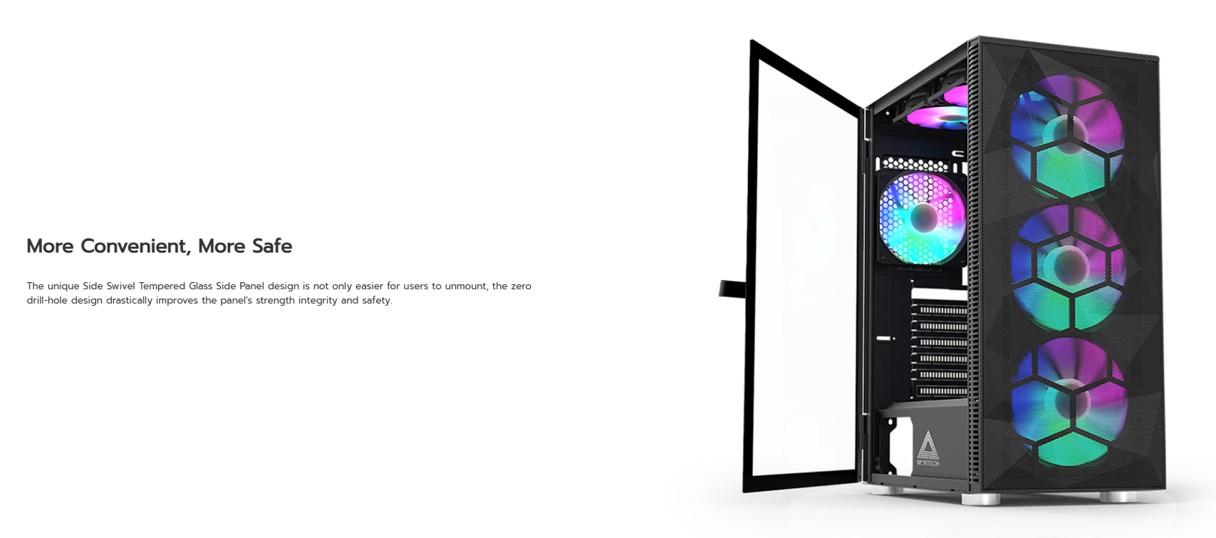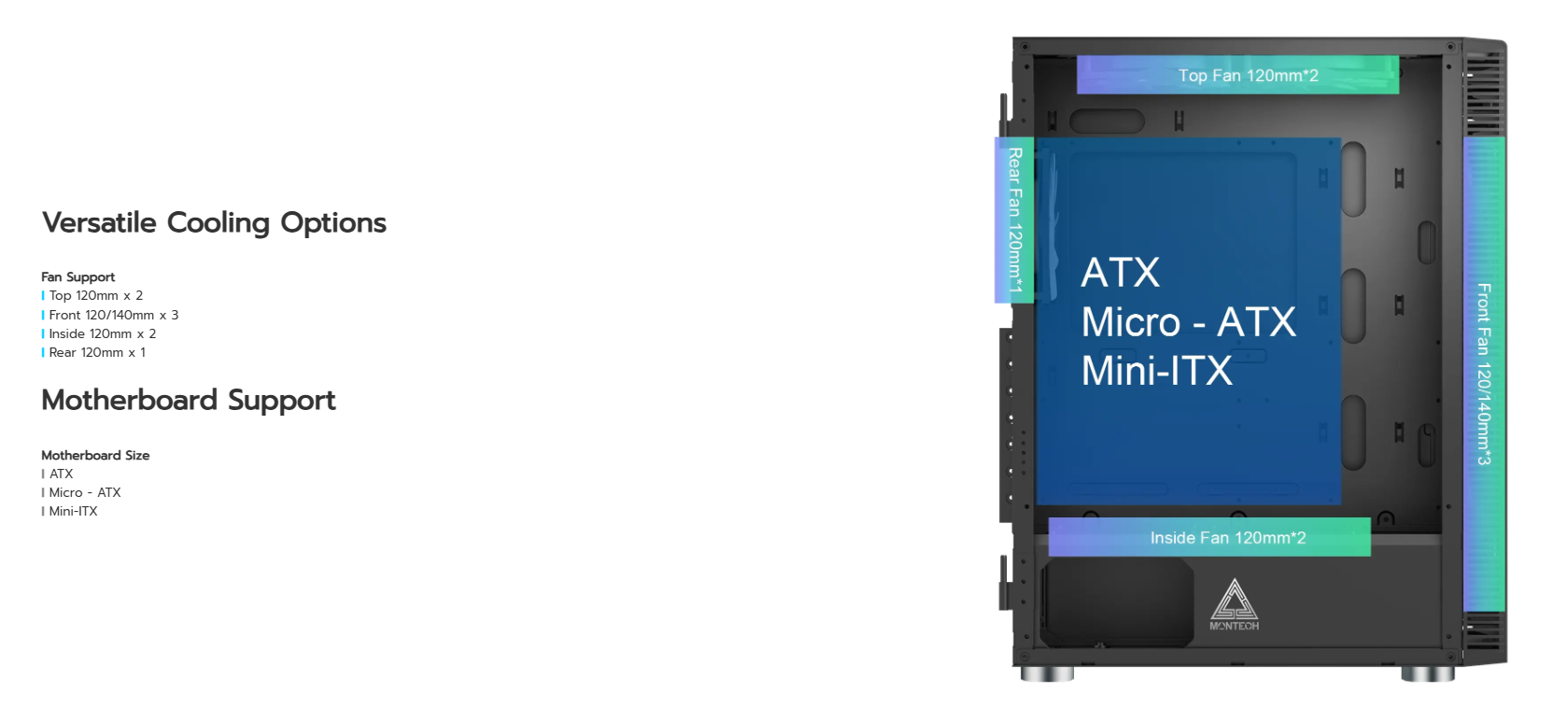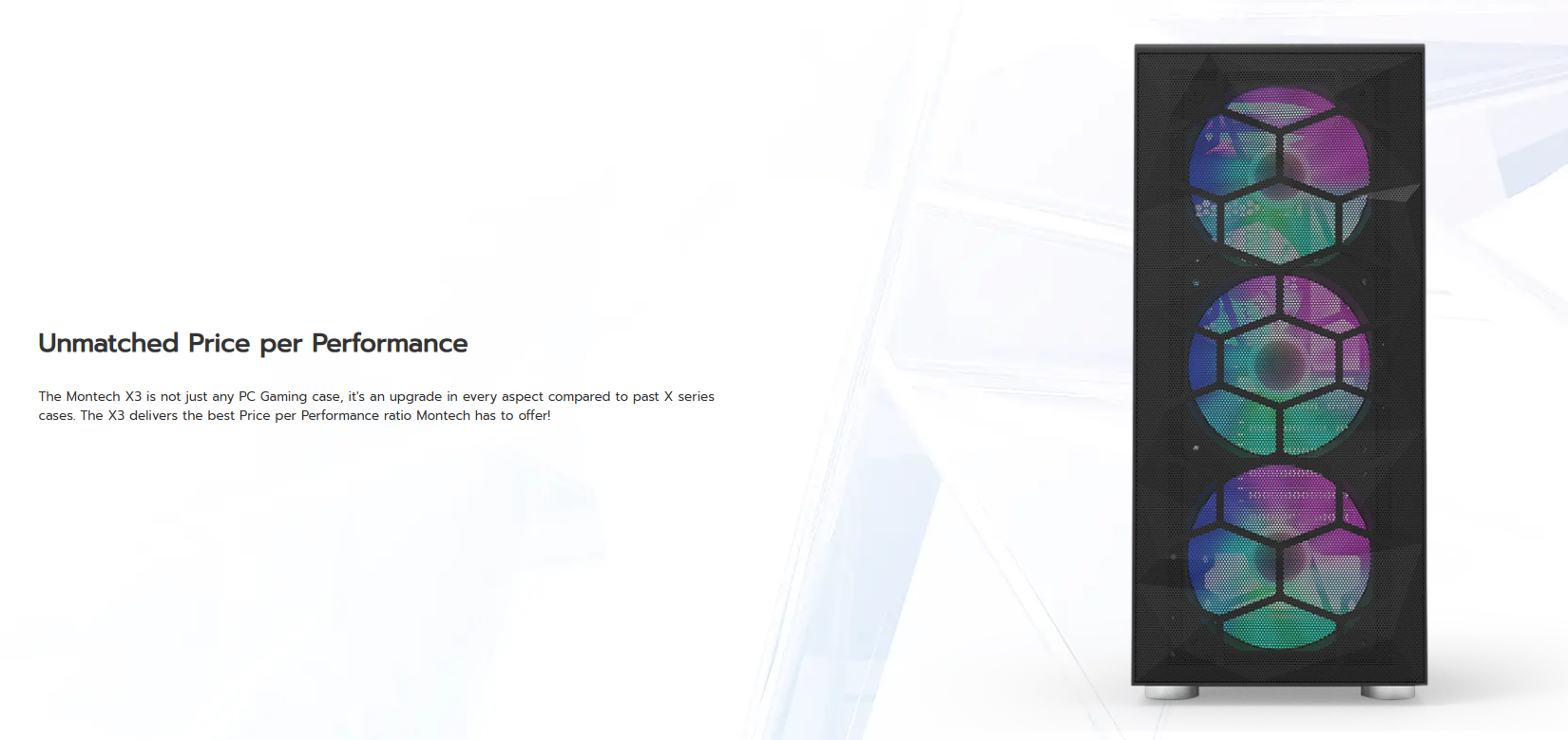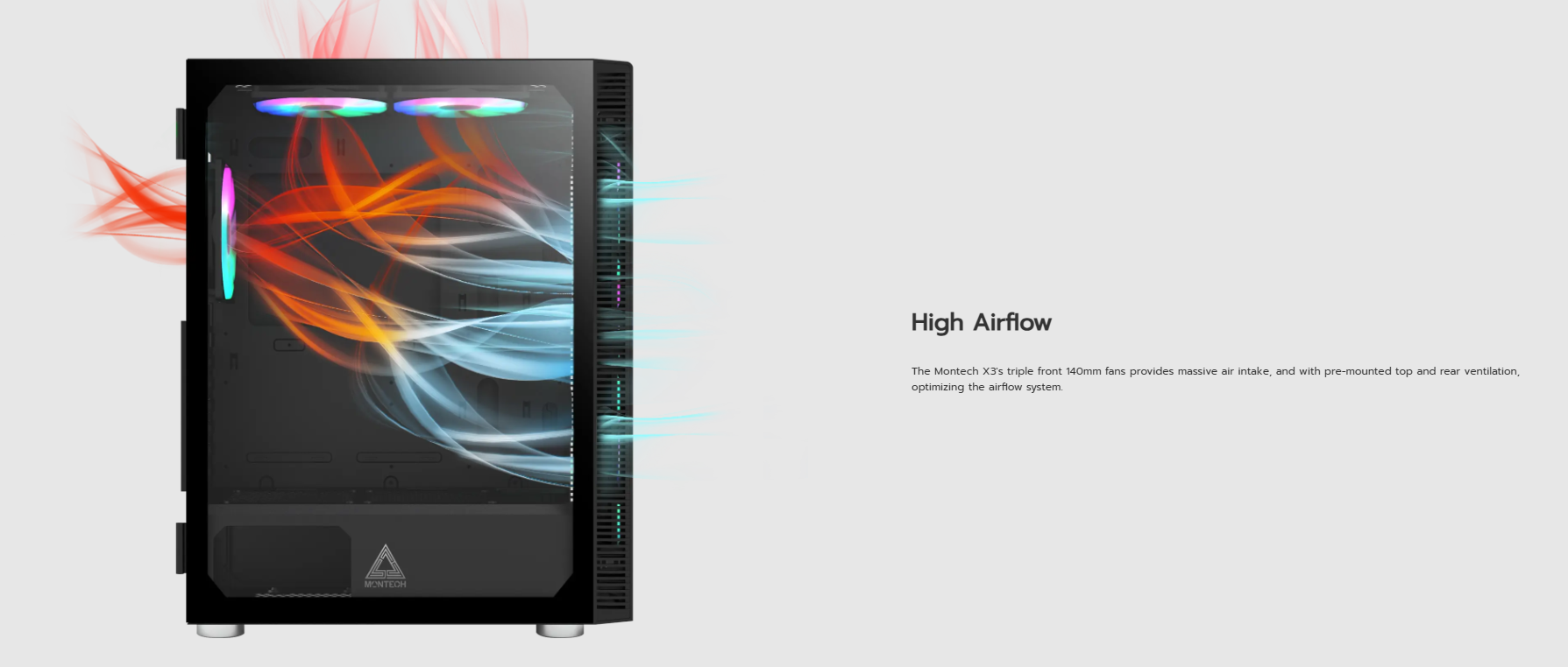 The Montech X3 Mesh is designed for gamers who demand maximum cooling and sleek aesthetics. With 6 pre-installed RGB fans, tempered glass side panel, and versatile hardware support, it’s the perfect case to showcase your build while keeping it cool and quiet.