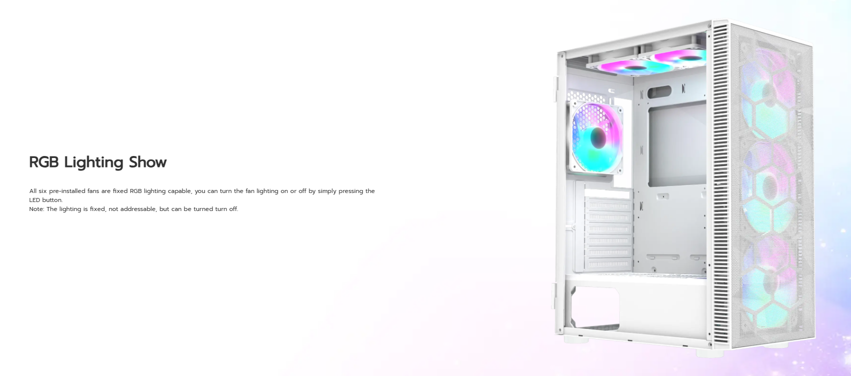 🌬 Six Pre-Installed RGB Fans – vibrant airflow out of the box